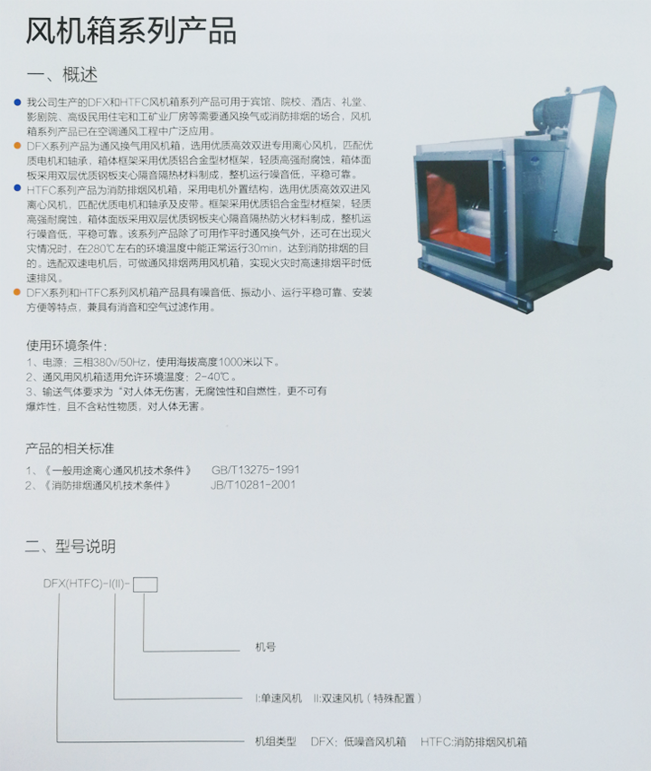我公司生產(chǎn)的DFX和HTFC風(fēng)機箱系列兩大類風(fēng)機箱產(chǎn)品,分別是排風(fēng)風(fēng)機箱和排煙風(fēng)機箱。排風(fēng)風(fēng)機箱,可用于賓館、醫(yī)院、學(xué)校、酒店、禮堂、廠房等需要通風(fēng)換氣之用。