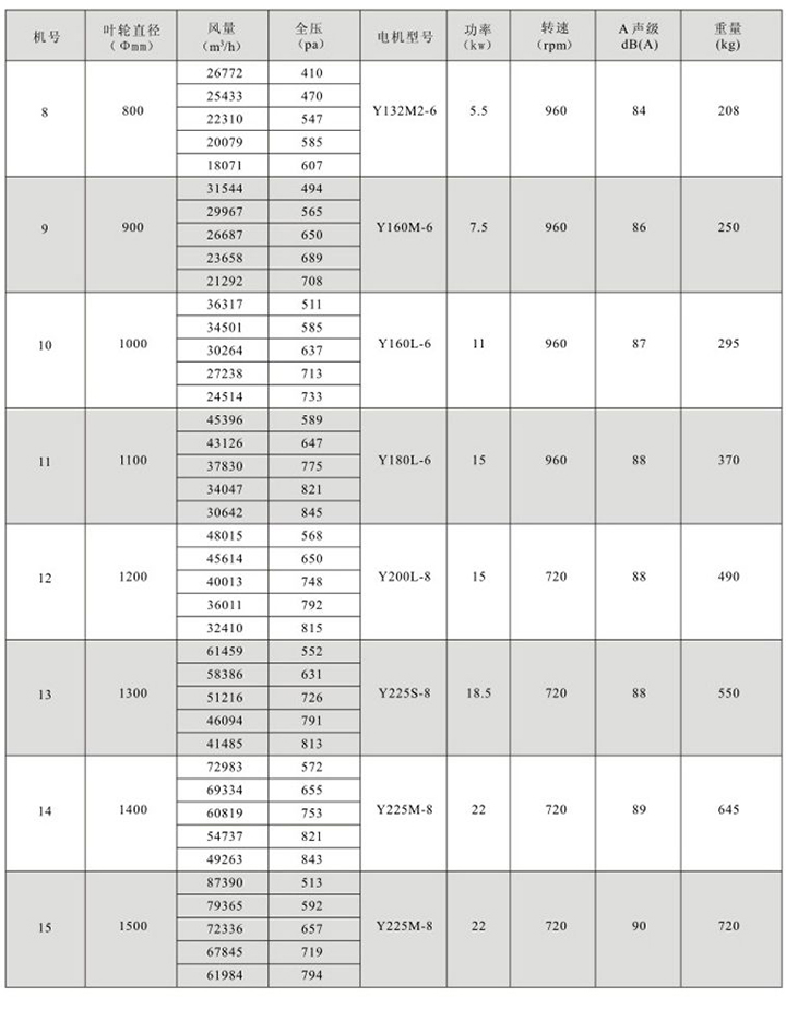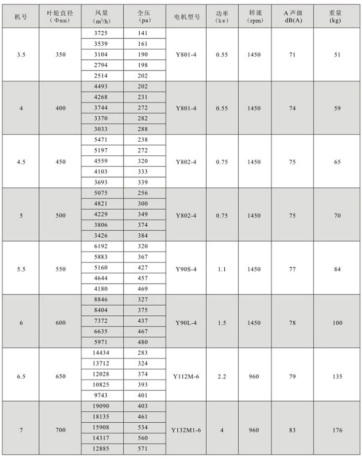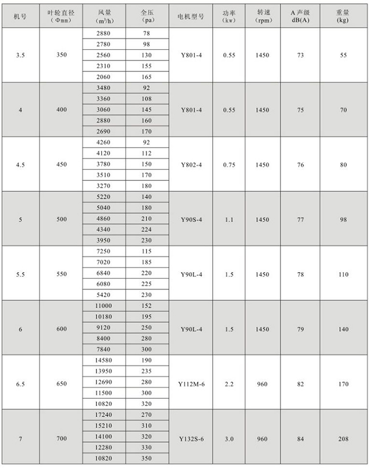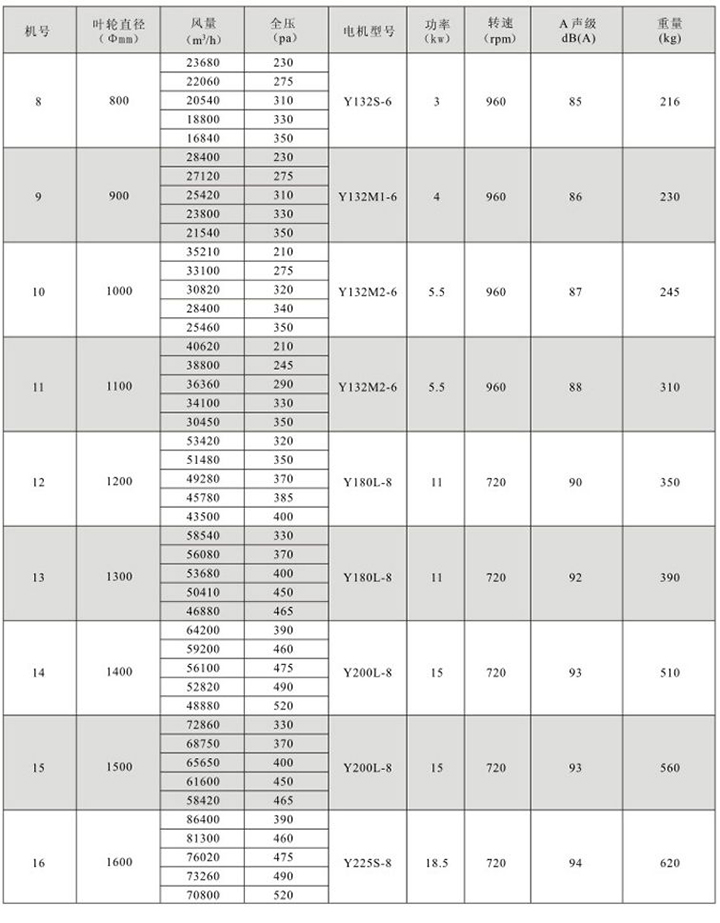 特點:適用于風量較小而壓力要求較高的場合。 用途:發電廠、橡膠廠、汽車廠、摩托車廠及防止、冶金等大型工廠的屋頂送排風。 規格: 風機直徑:Φ300~1000mm, 風量:878~31436m3/h,