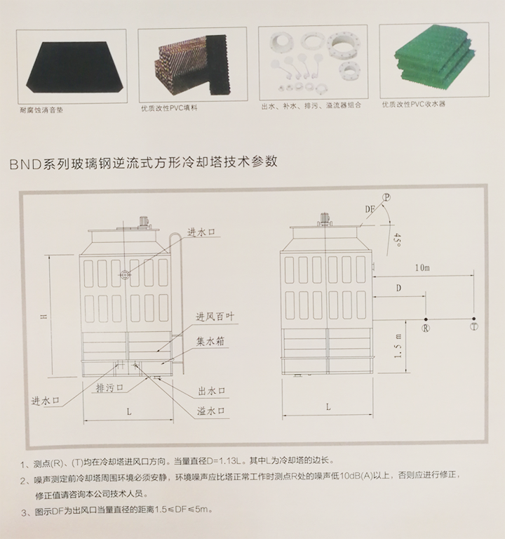 節能型玻璃鋼冷卻塔產品概述 節能型玻璃鋼冷卻塔的設計中采用的“方形逆流式冷卻塔用斜梯開波填料片”,其熱力、 阻力特性均于其 他填料。