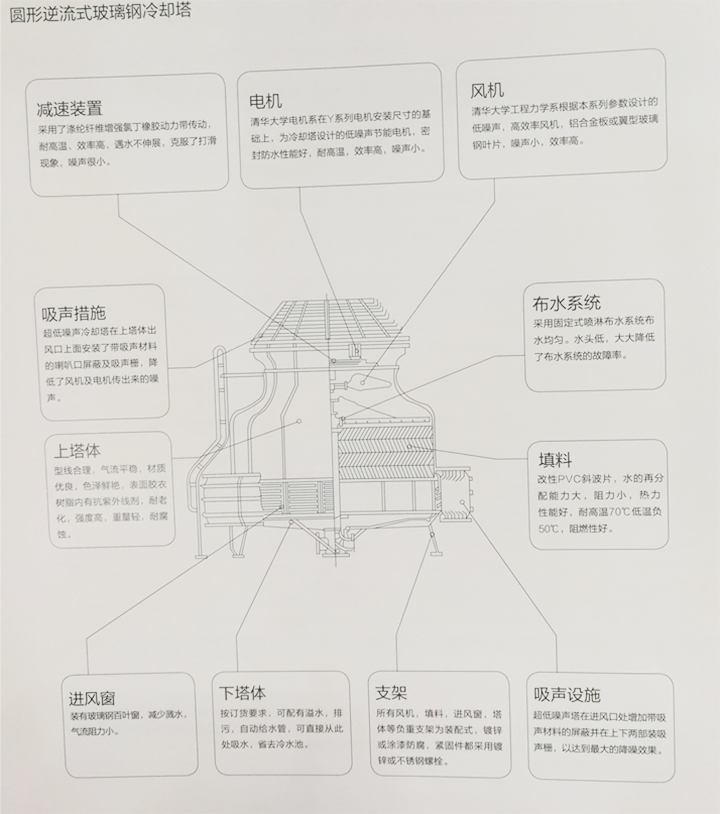 公司生產的所有冷卻塔都是節能型的,因為電機安裝容量在國內外同類冷卻塔中較低,低噪聲型及超低噪聲型冷卻塔水溫降一般為3-8℃,適合于空調制冷等一般水溫降的冷卻。